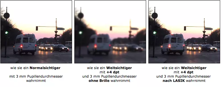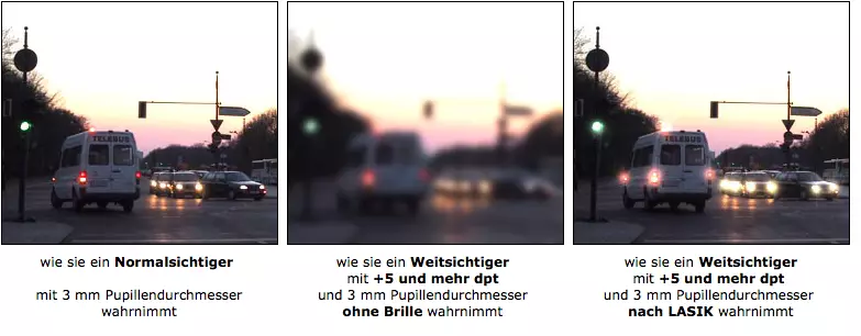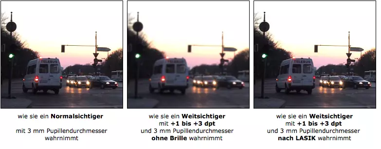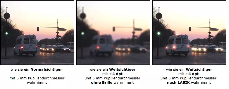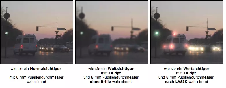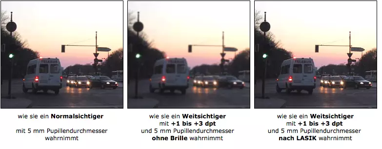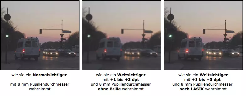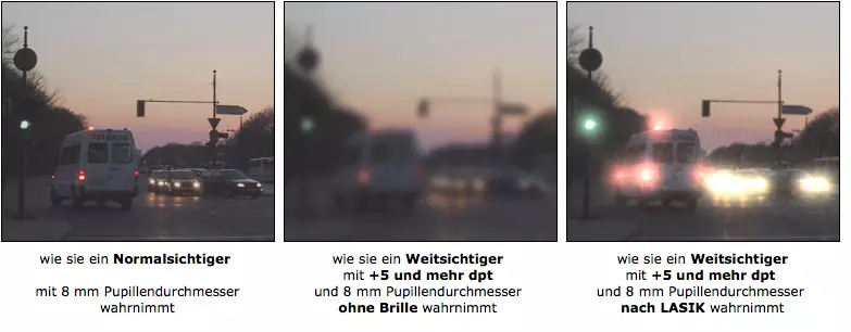 Lassen Sie sich in jedem Fall von Ihrem Operateur vor dem Eingriff beraten, ob bei Ihnen eine Einschränkung des Sehvermögens bei Dämmerung und bei Nacht zu erwarten ist.